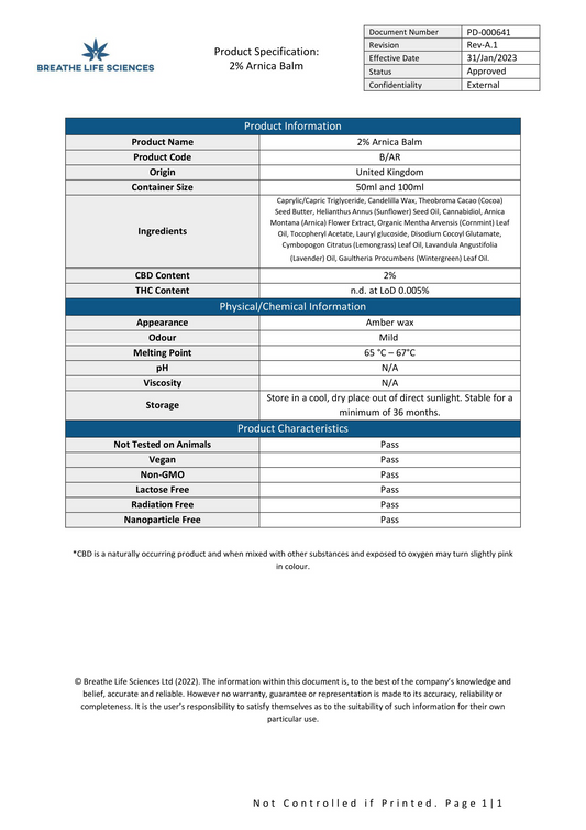 Dr Watson 1000mg CBD Arnica Balm - 50ml