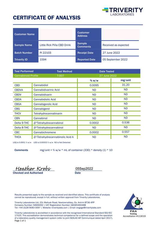 12 x Little Rick 32mg CBD Sparkling 330ml Pina